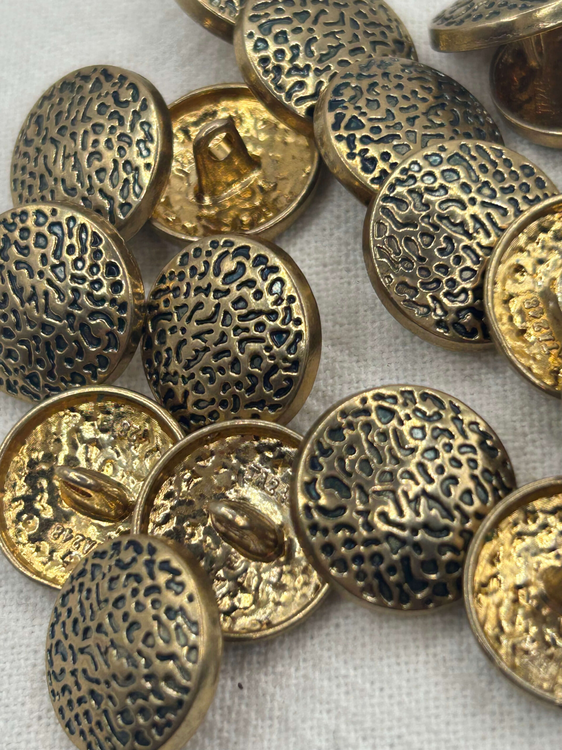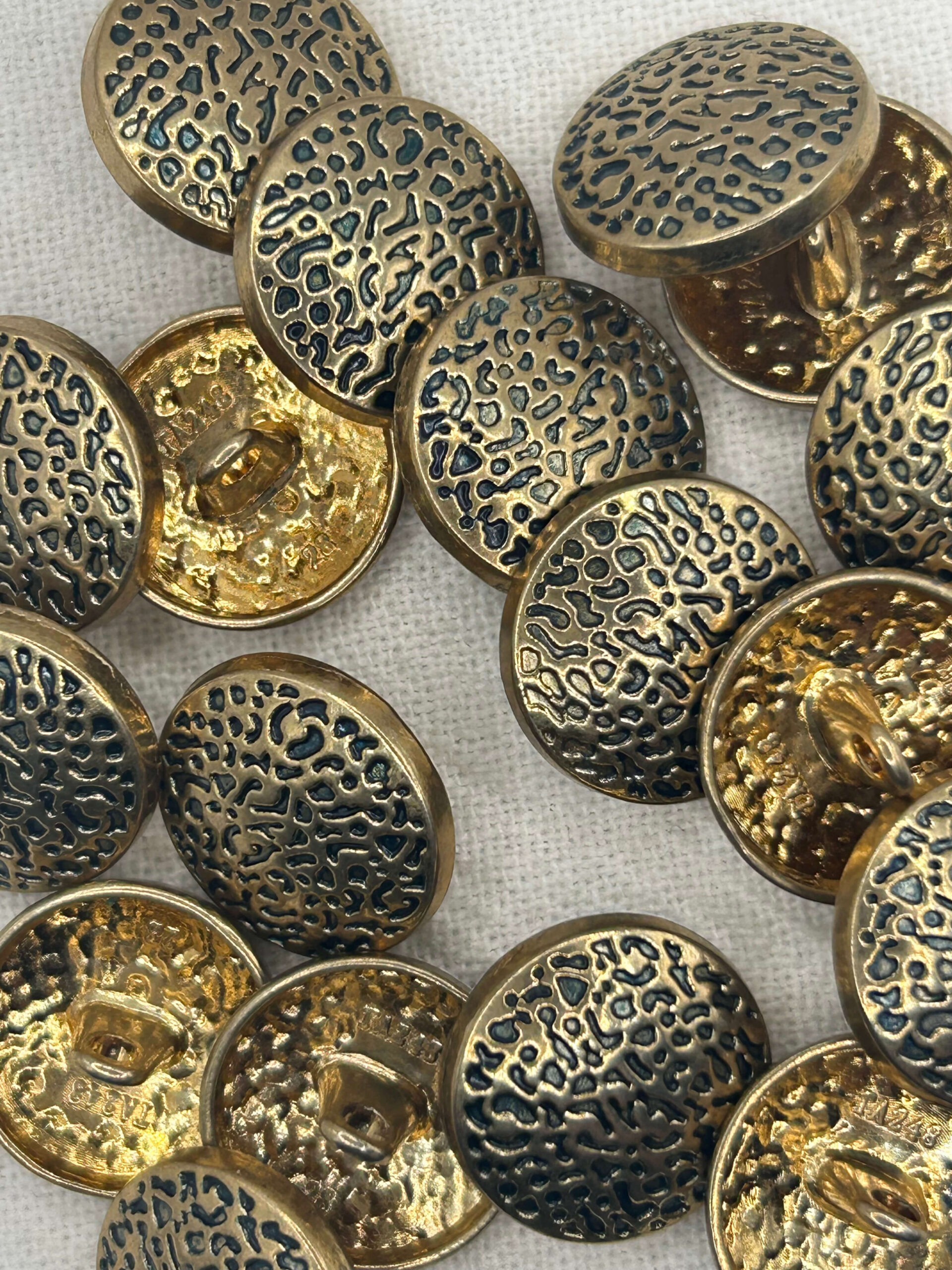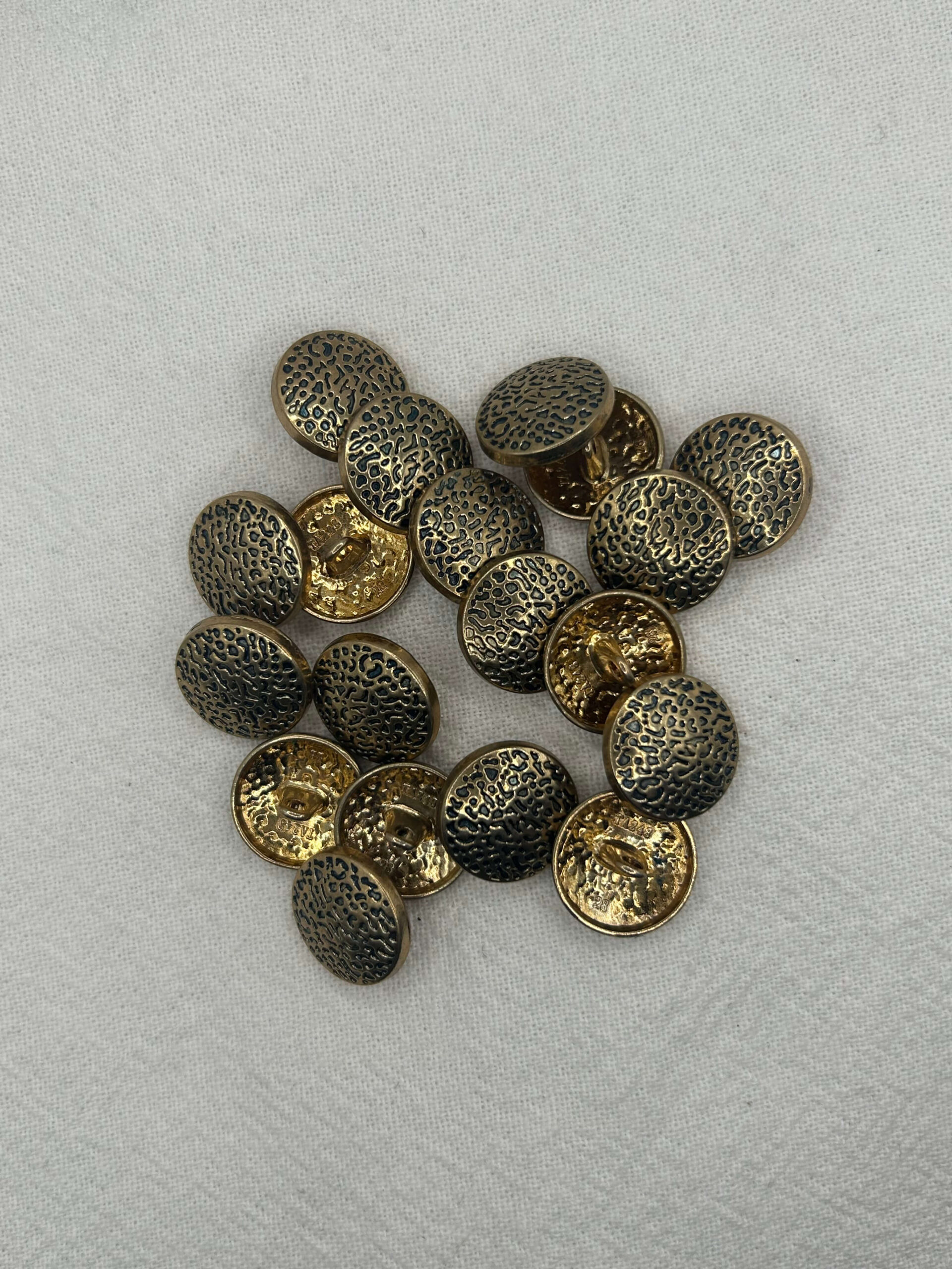 18mm aged golden print button with shank. Adds vintage charm and sophistication to clothing, accessories, and DIY crafts.