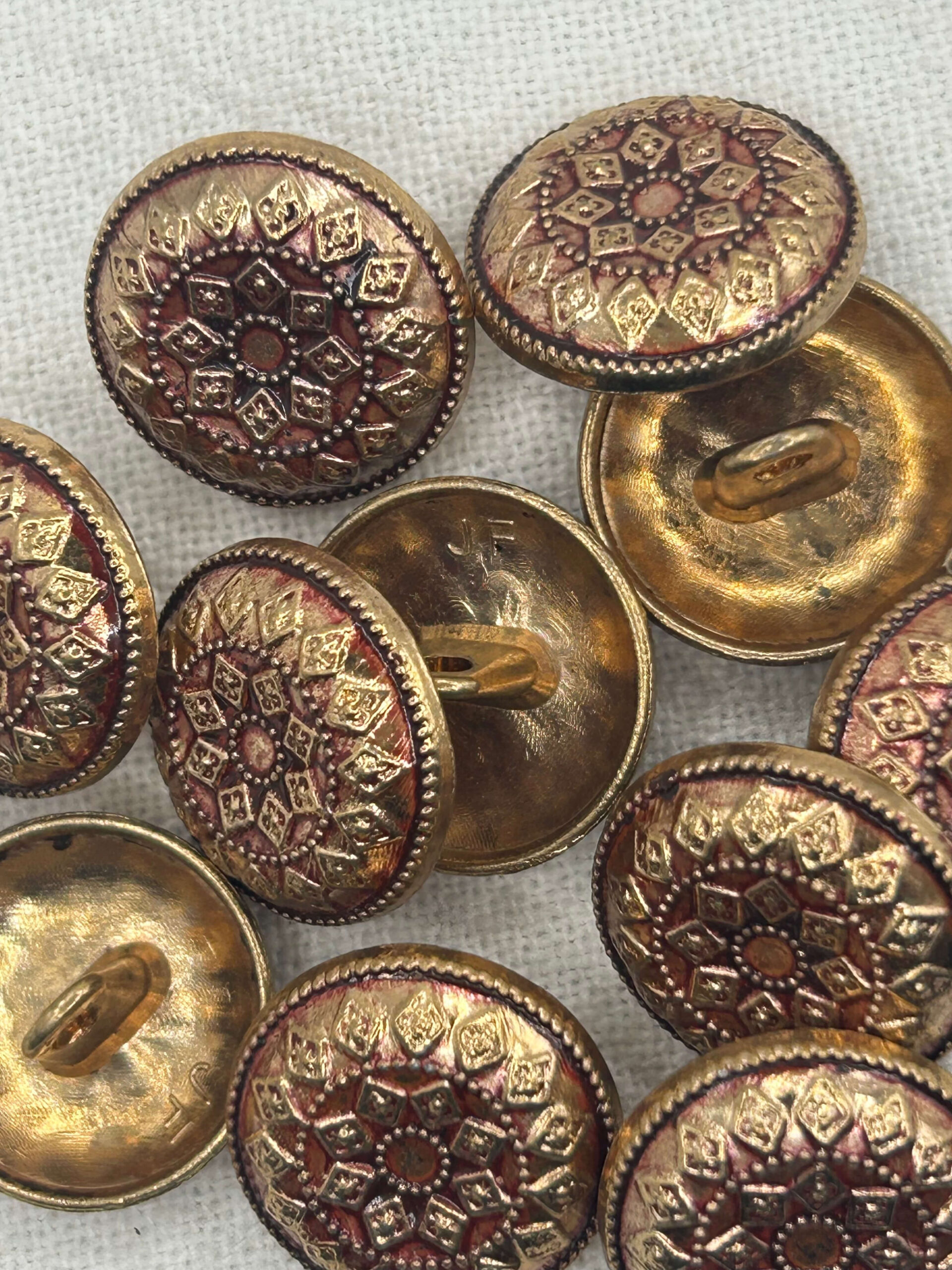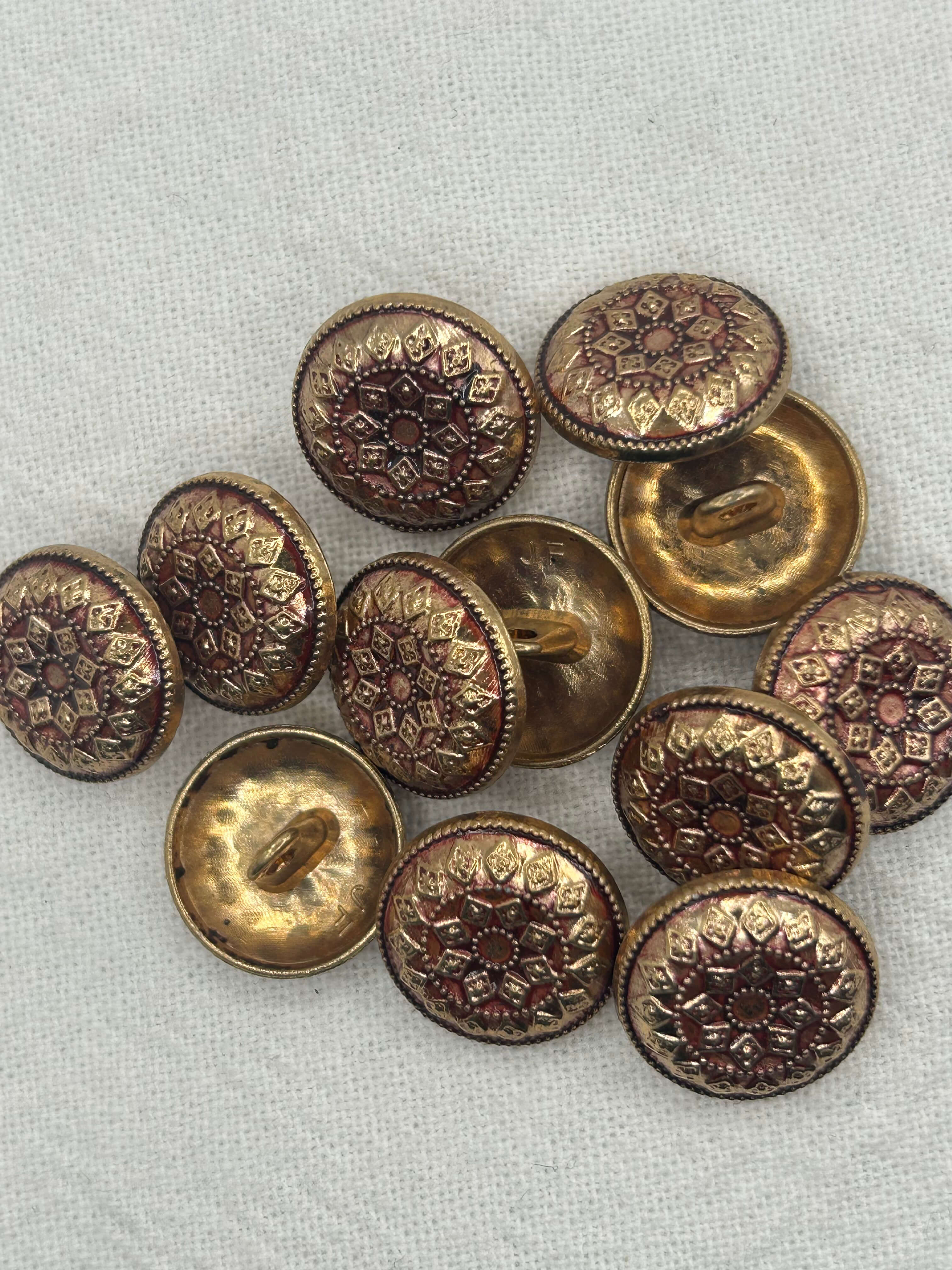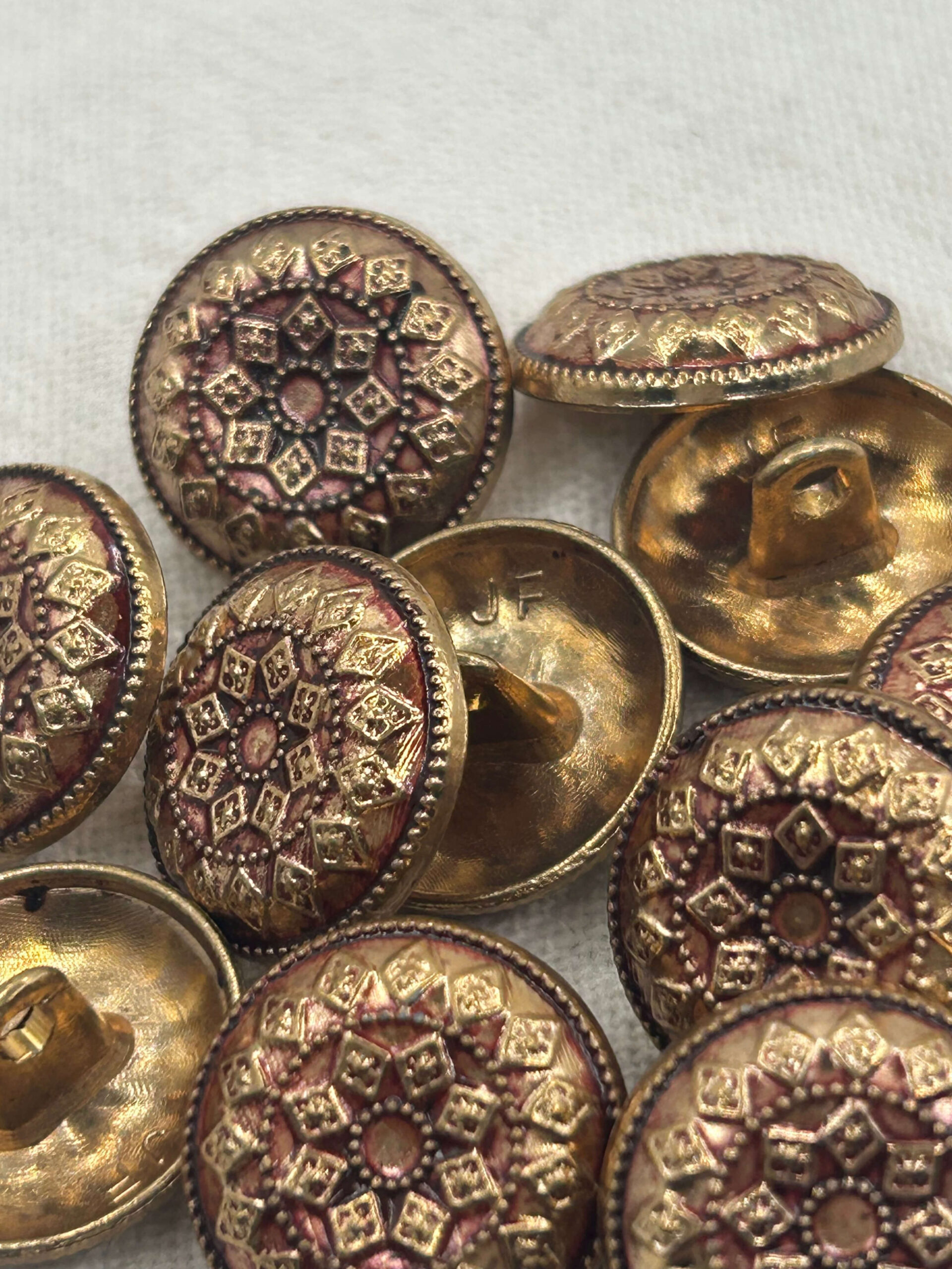 18mm decorative pink-brown metal buttons with shank. Handmade style, ideal for unique garment closures and DIY craft embellishments.