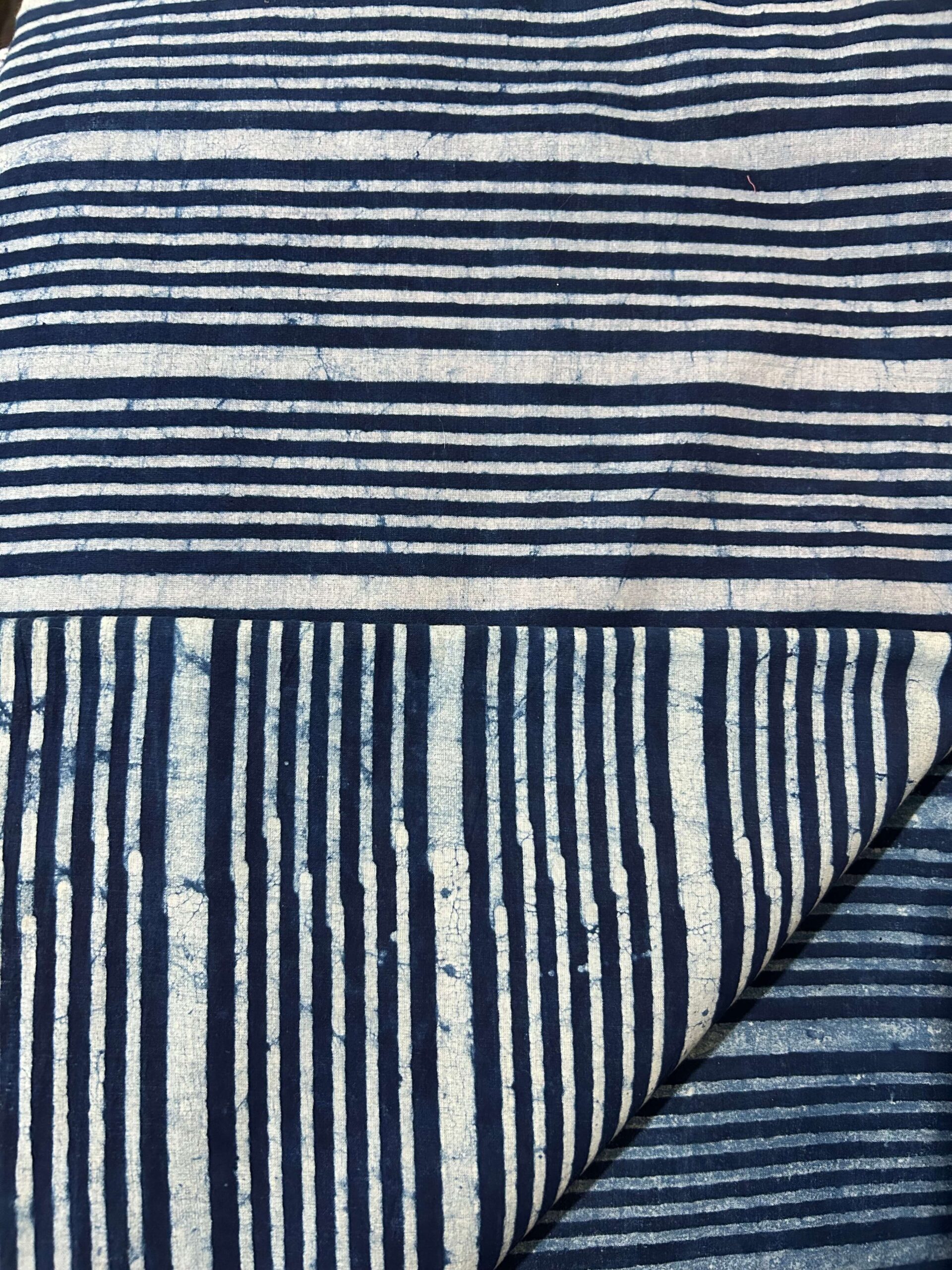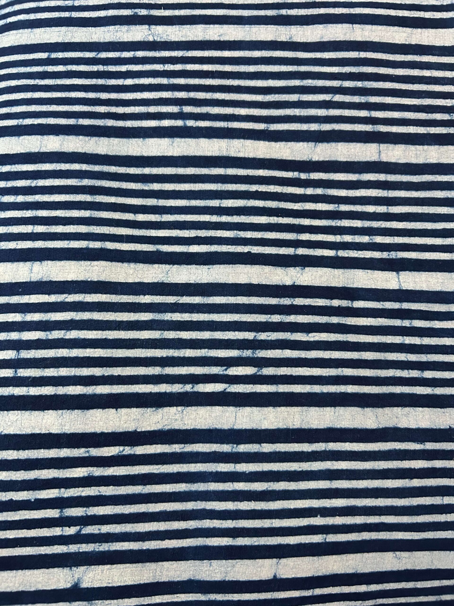 Clean lines meet handmade charm in this classic indigo navy stripe cotton fabric. Each stripe carries the beautiful natural imperfections of handcraft. Slight variations in width and dye intensity that give this fabric its organic, artisanal character.