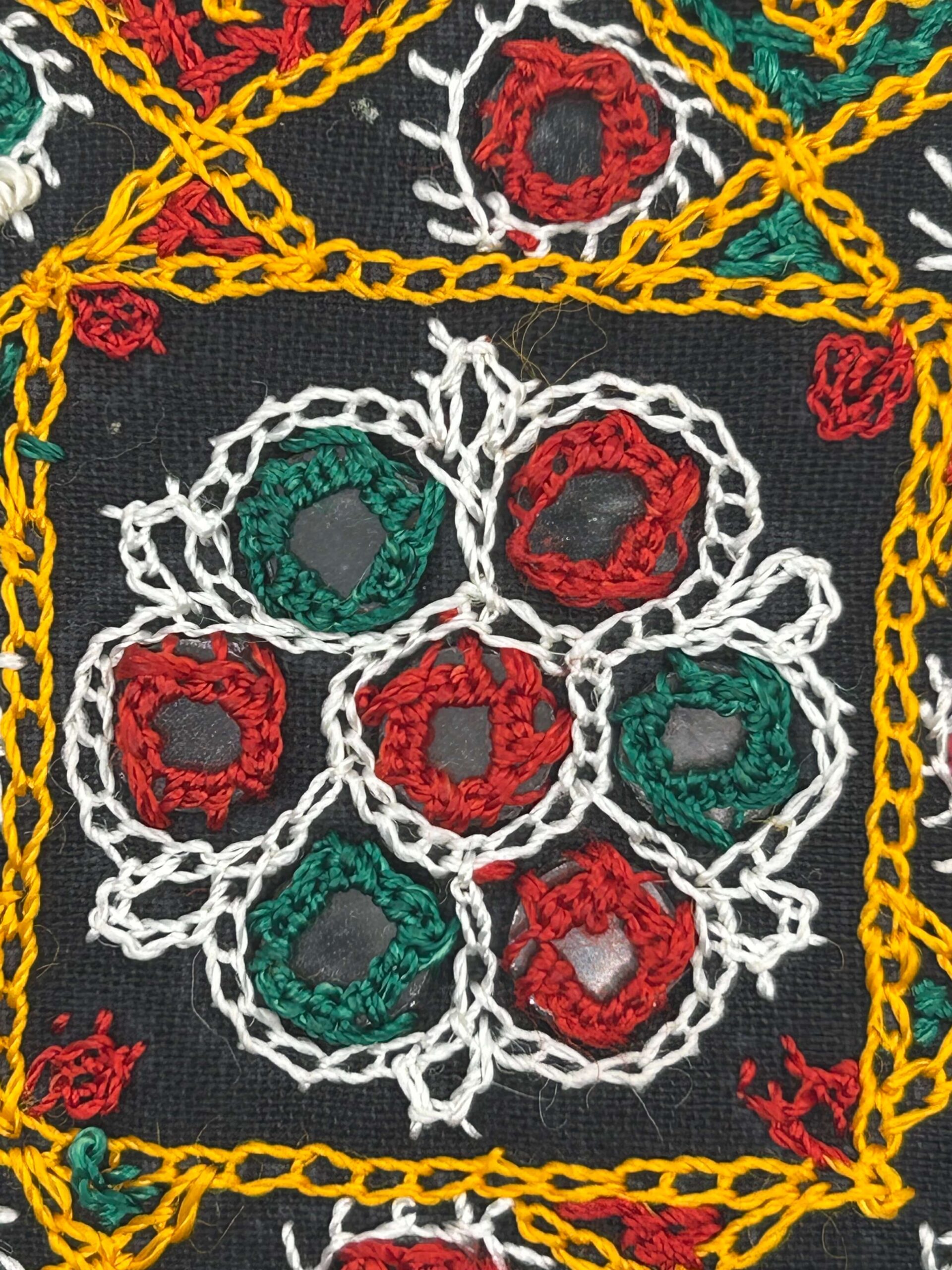 Each motif is created stitch by stitch, often taking hours or days to complete, depending on complexity. Mirror work adds texture and brightness.Because of this detailed work, Kutch embroidery is ideal for statement pieces such as jackets, cushions, and framed textile art where craftsmanship is meant to stand out.