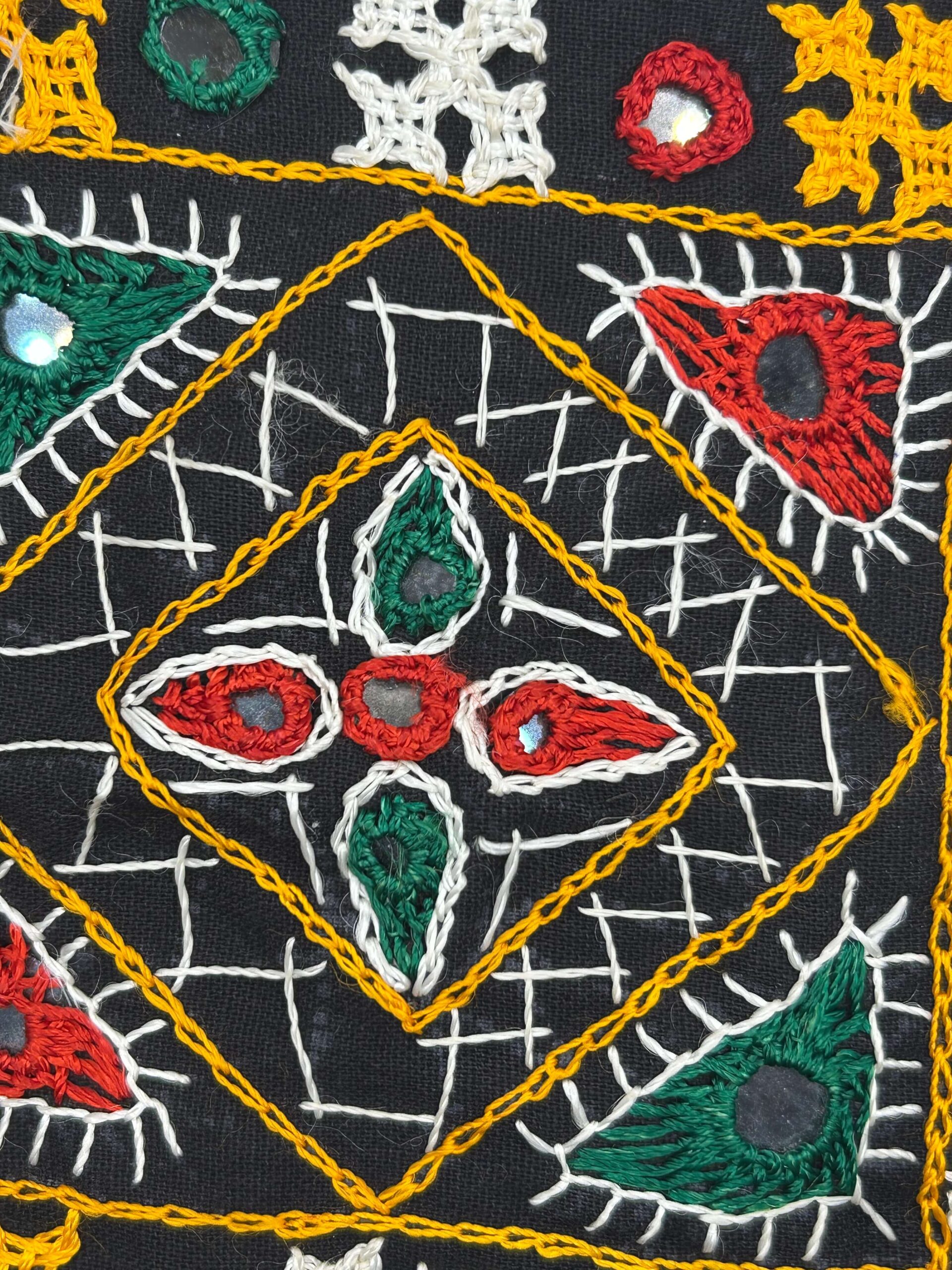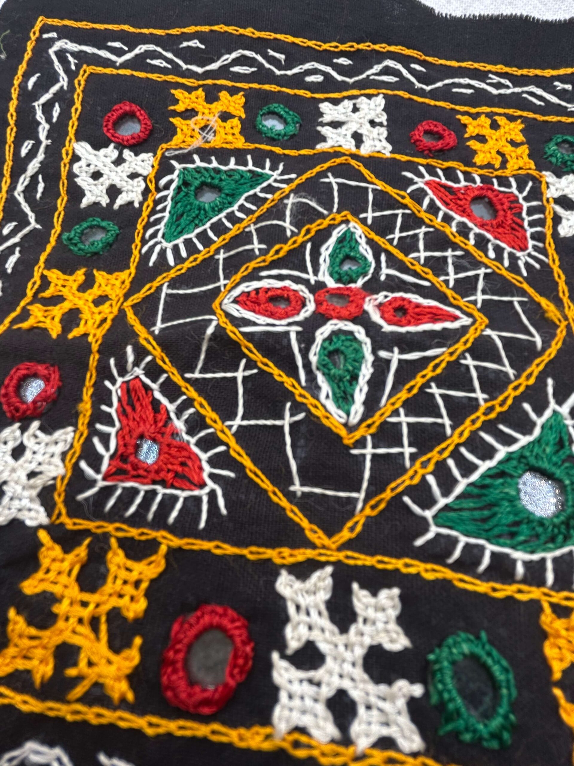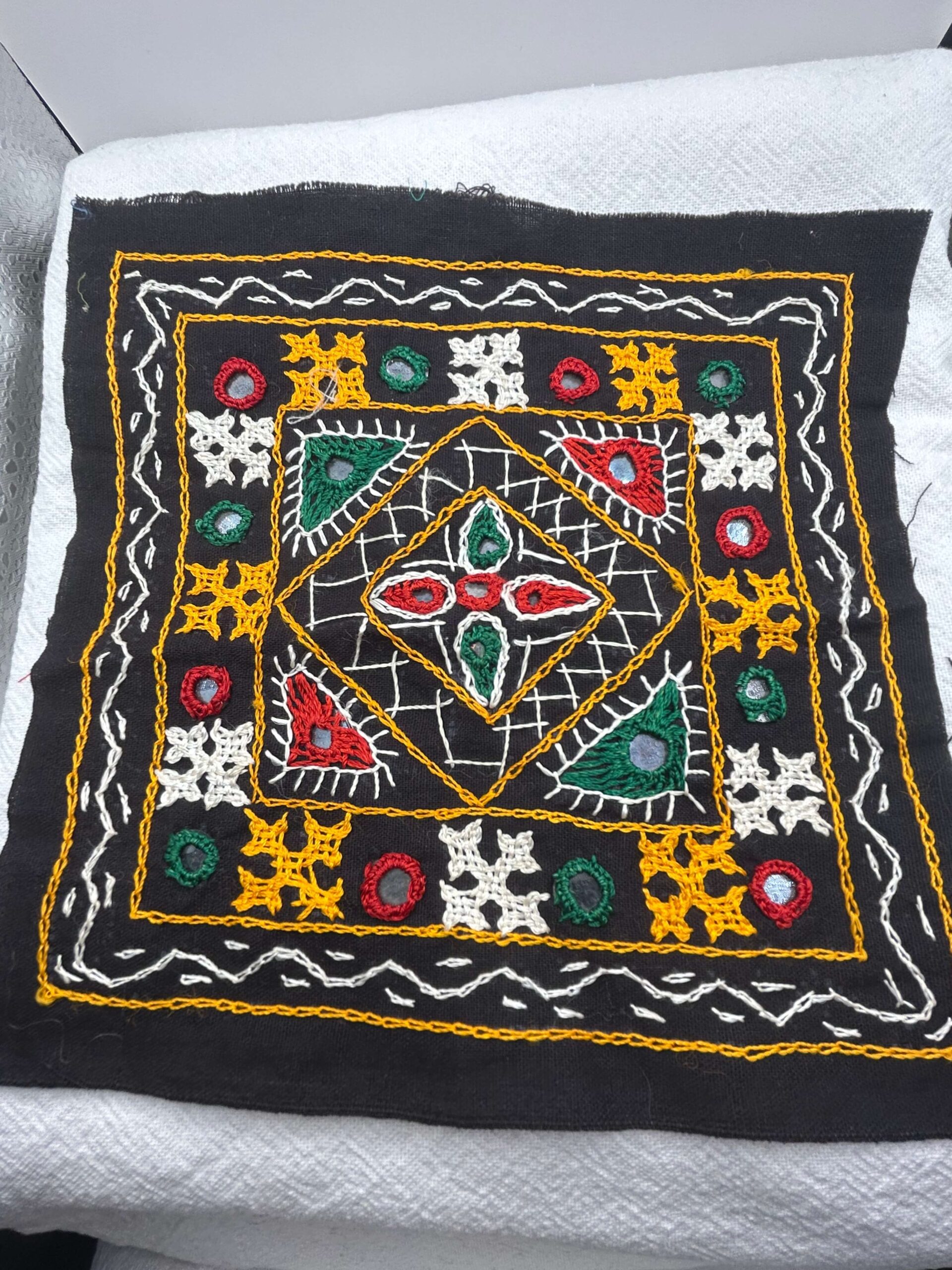 Large Kutch hand-embroidered square patch. Traditional Indian embroidery, perfect for statement jackets, bags, and decorative crafts.